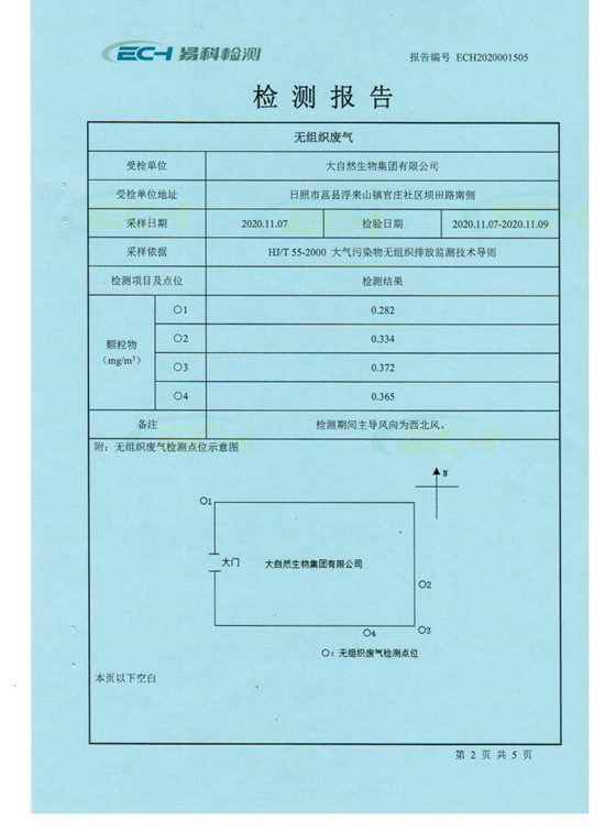 大自然生物集團有限公司無組織廢氣、噪聲檢測報告